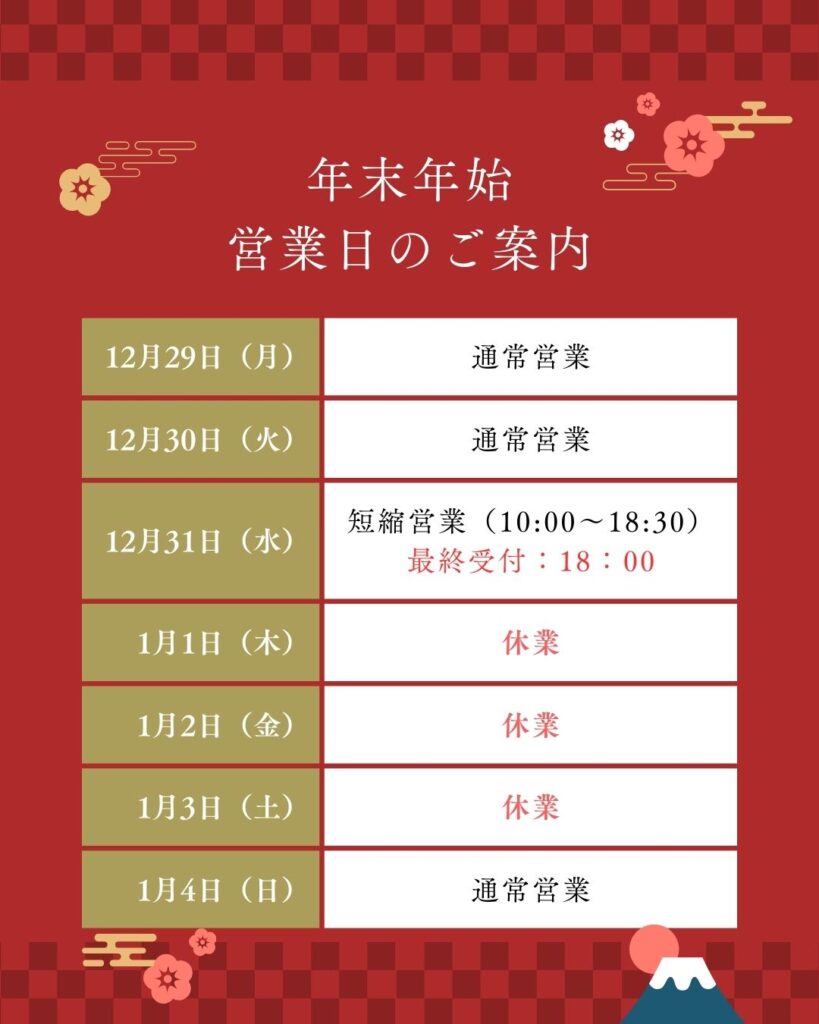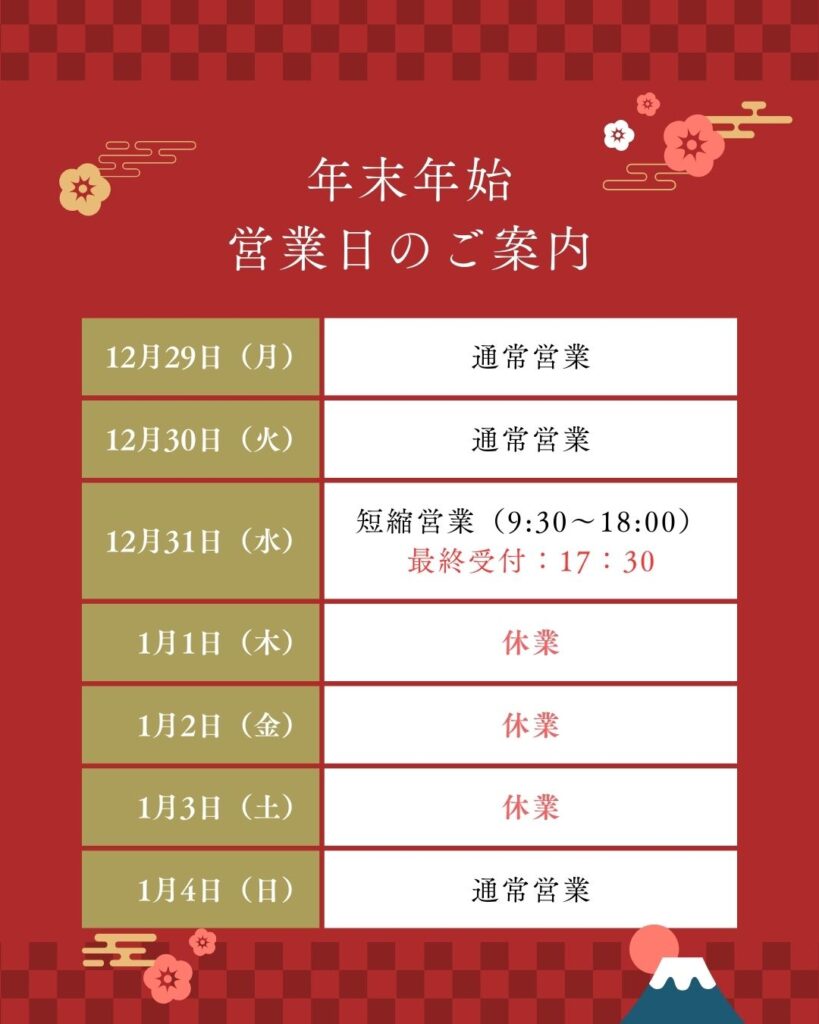 2025年もあっという間に年の瀬ですね!私たちの営業日程をお知らせします。